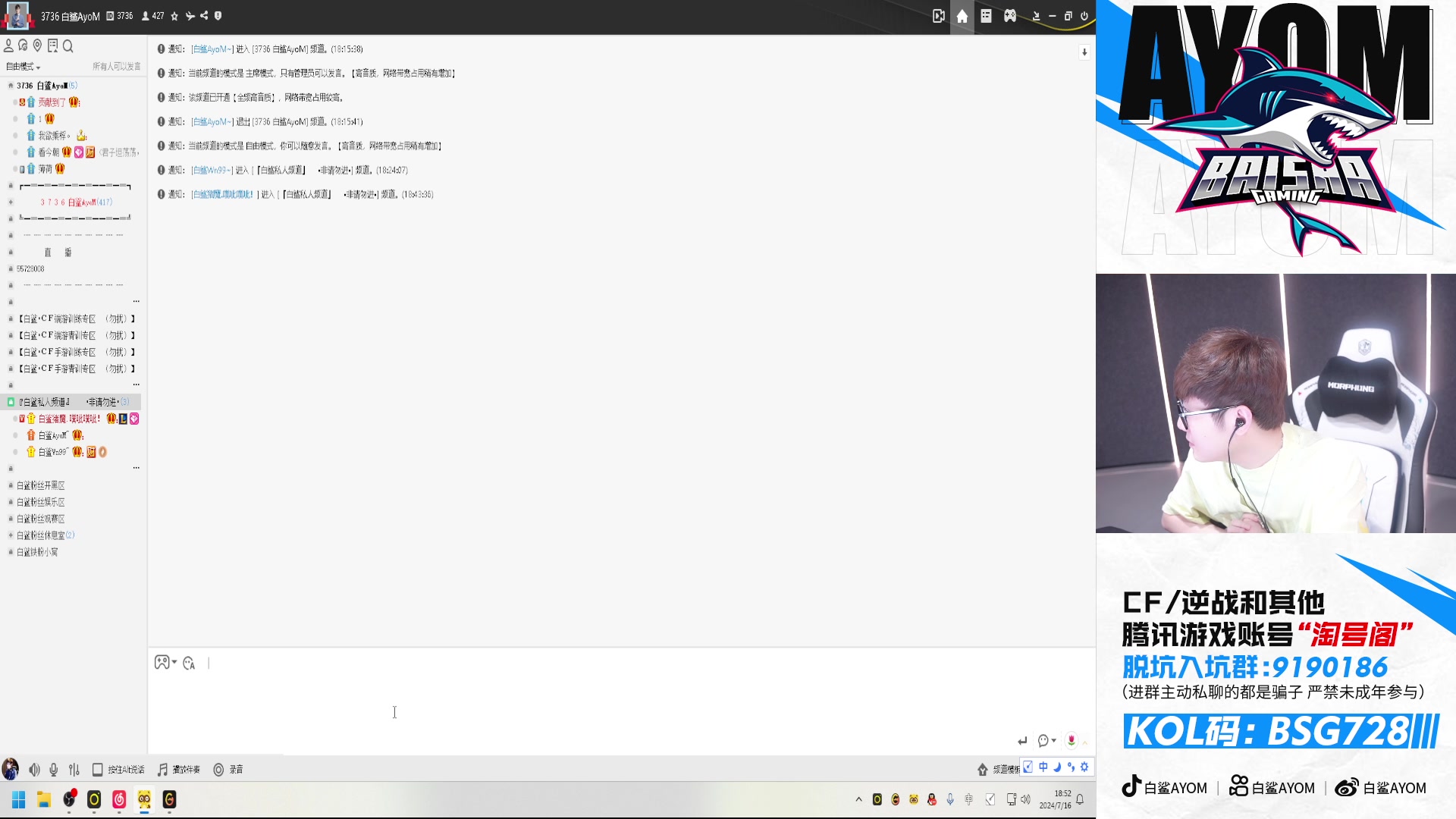 【2024-07-16 18点场】白鲨AyoM:娱乐玩会,19号去成都~
