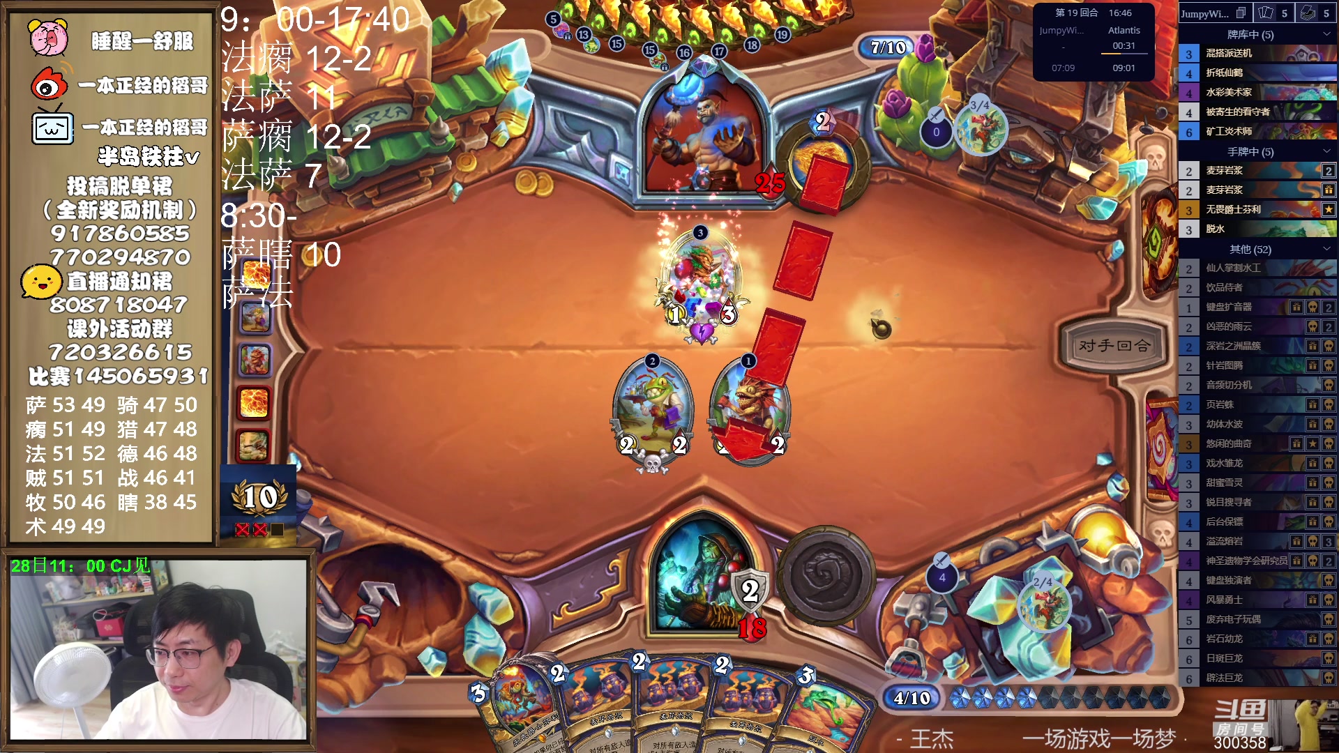 稻哥炉石12胜竞技场(瞎):水友劝撕,但上7000