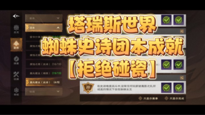 塔瑞斯世界蜘蛛史诗团本成就【拒绝碰瓷】