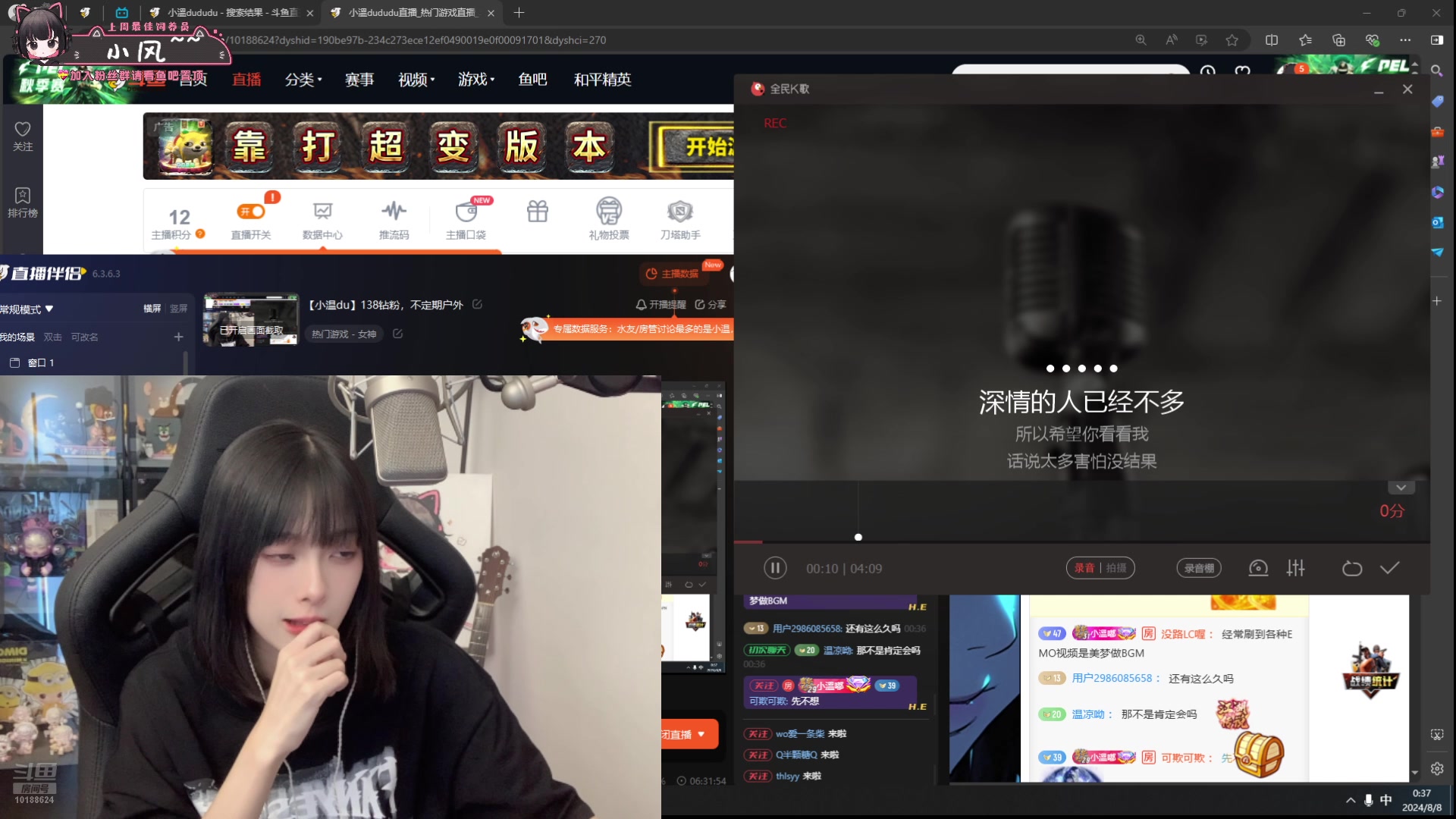 【2024-08-07 22点场】小溫dududu:【小温du】pubg一会