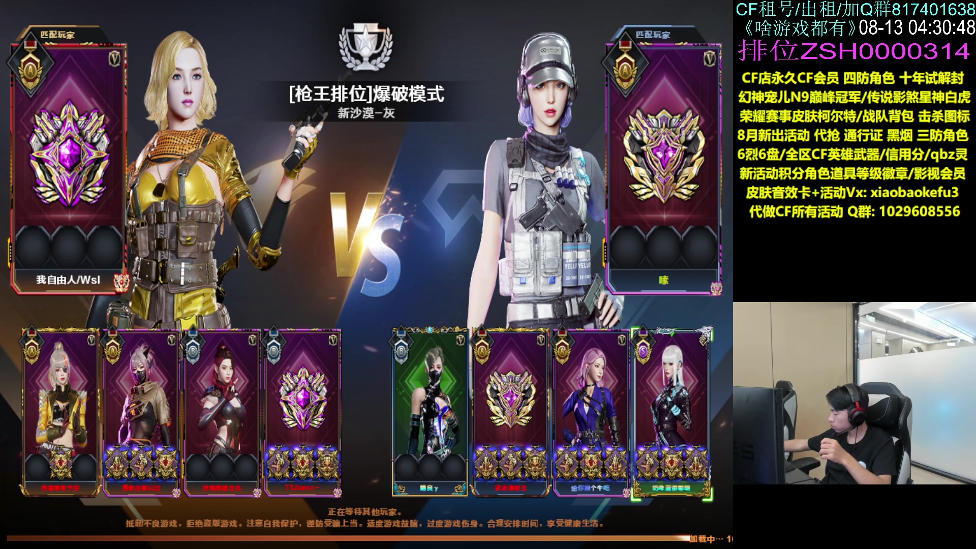 【2024-08-13 15点场】XROCK赵山河:【直播】幻神巅峰荣耀/QBZ斗鱼皮肤等