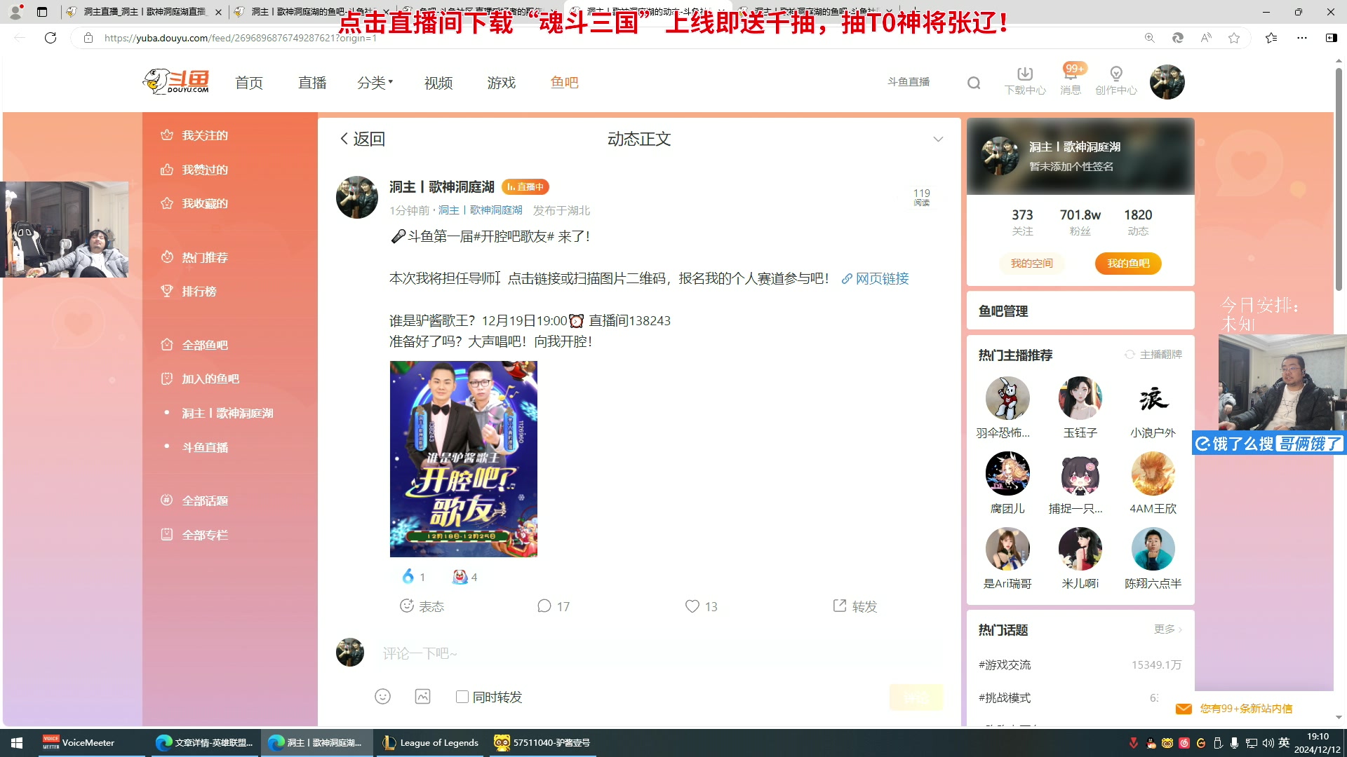 【2024-12-12 19点场】洞主丨歌神洞庭湖:欢乐时光已经开始了!