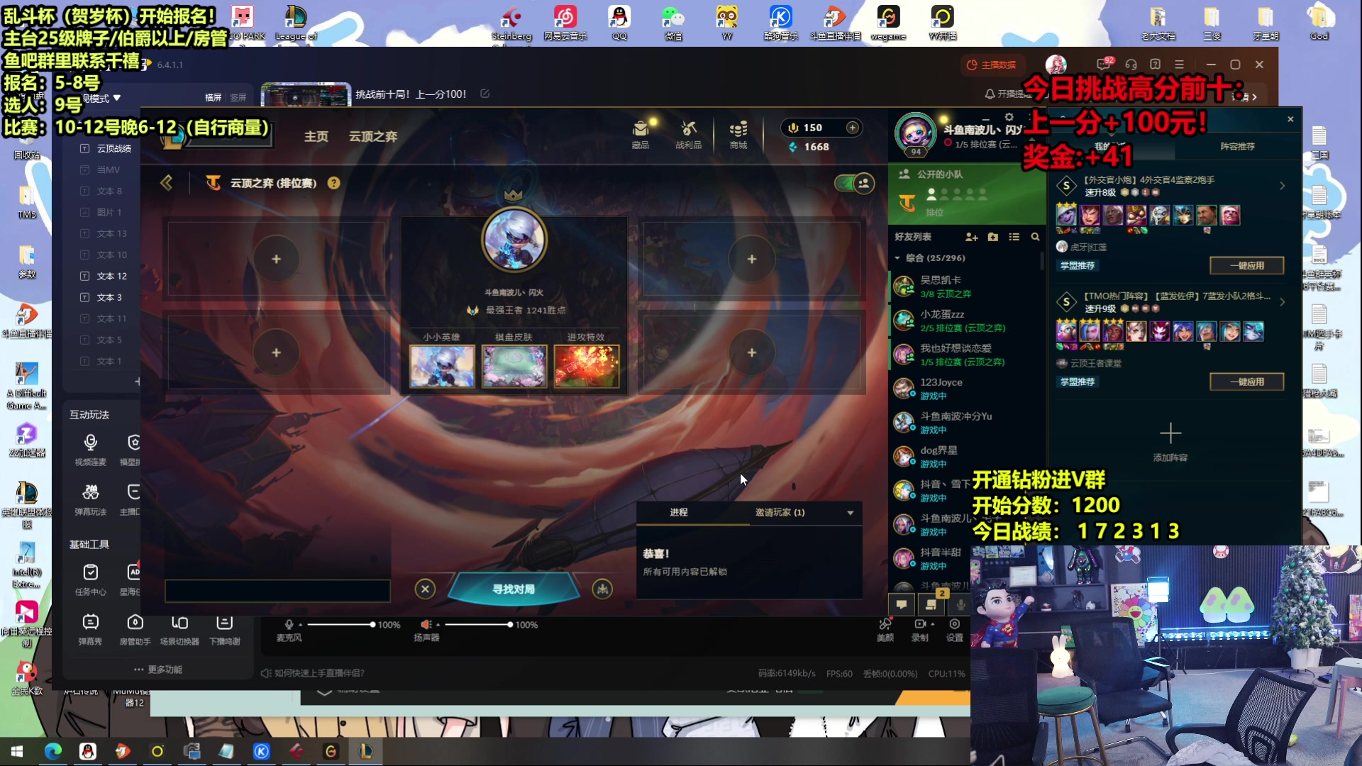 【2025-01-07 08点场】南波儿大魔王丶:挑战前十局!上一分100!