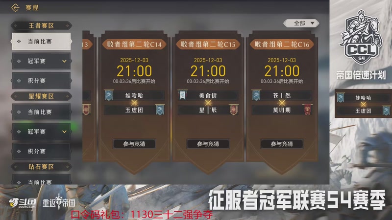 【2025-12-3 20点场】是猫咪吖丶:帝国联赛败者组c14:娃哈哈VS玉虚团