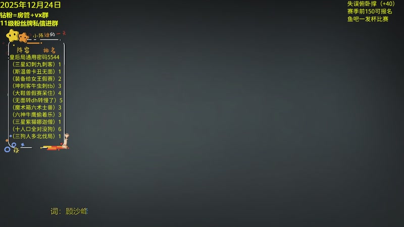 【2025-12-24 02点场】陌小陌:天梯十四冠冲榜直播间