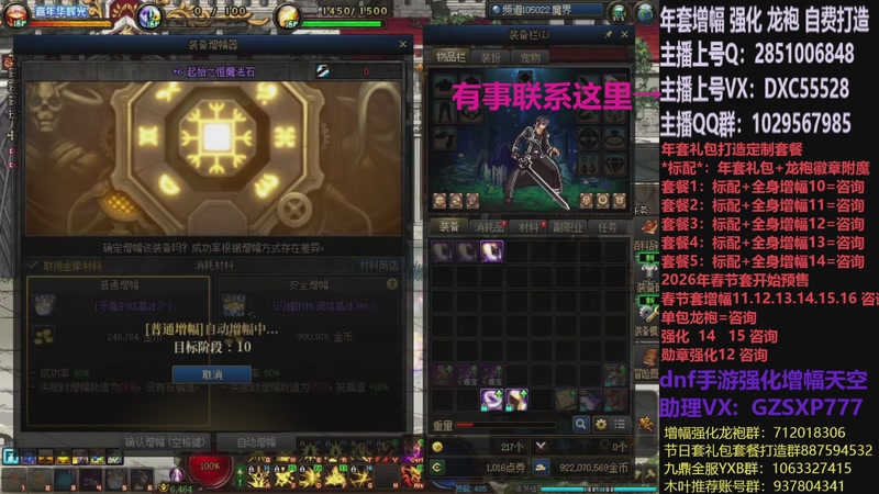 【2026-01-01 10点场】DNF木叶剑心:助理:2026年年套增幅强化木叶晚上播