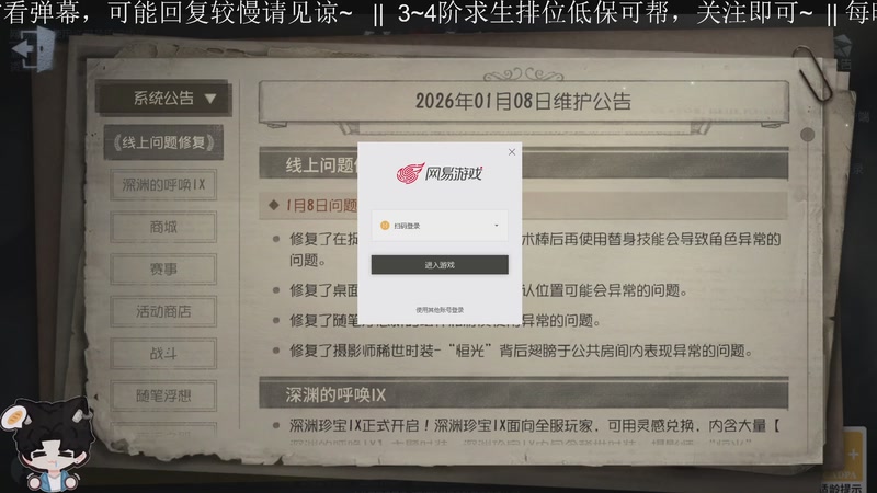 【2026-01-08 20点场】Ryan心颜:关注可每天排位求生低保帮帮~