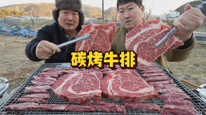 炭火慢烤韩牛盛宴,肋眼牛排与牛小排。厚切肋眼牛排,用炭火高温锁汁,香草盐提鲜,翻面瞬间熏香四溢。厚切肉质锁住满满肉汁,真是大饱口福!