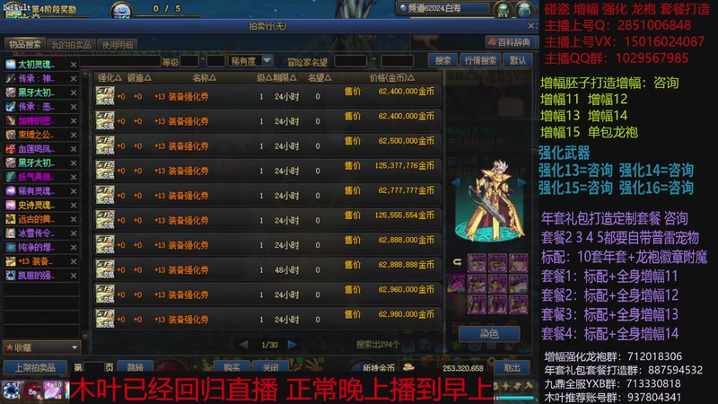 【2026-01-19 12点场】DNF木叶剑心:助理:2026年年套增幅强化木叶晚上播