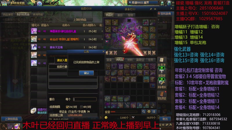 【2026-01-19 12点场】DNF木叶剑心:助理:2026年年套增幅强化木叶晚上播