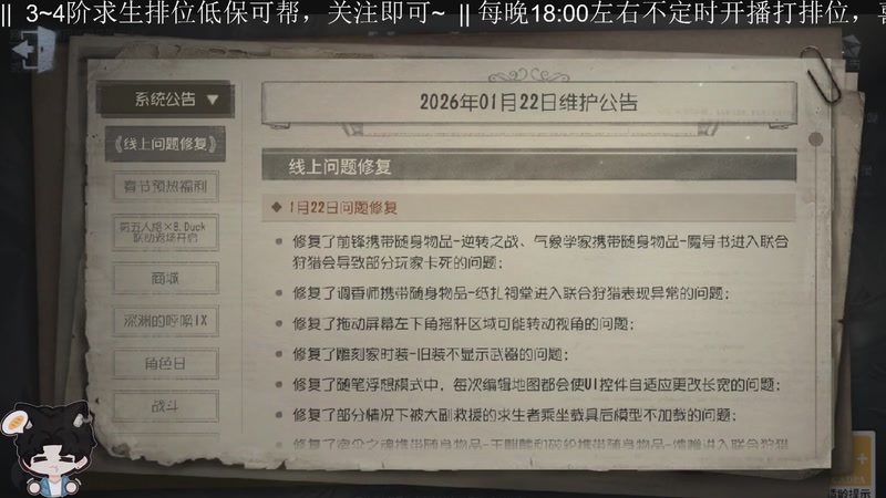 【2026-01-23 18点场】Ryan心颜:关注可每天排位求生低保帮帮~