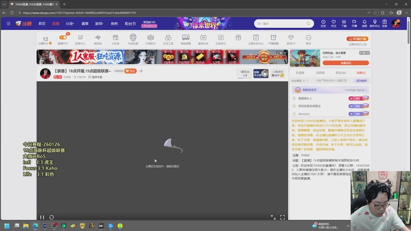 【2026-01-21 17点场】TH000:【直播】19点超级联赛木佛虎雷彩毛~