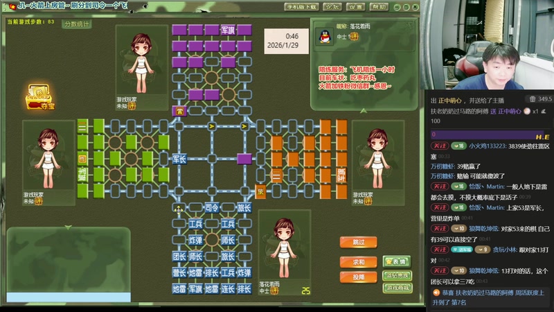 【2026-01-28 20点场】四国军棋欠你幸福:四暗军棋福语嫣,扫地福来了