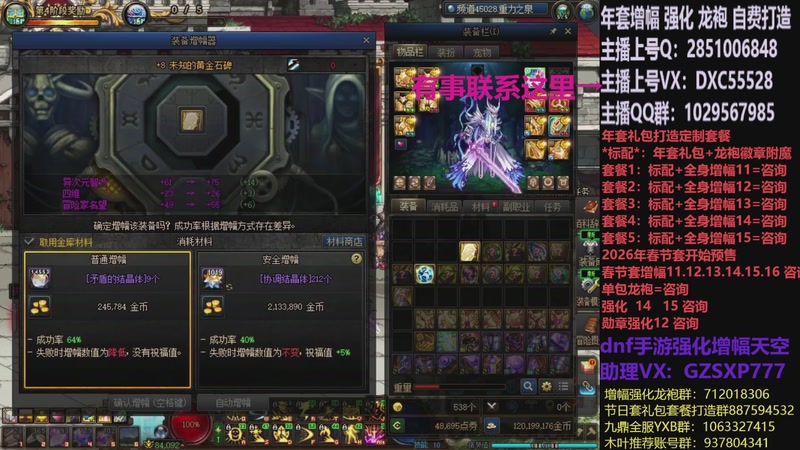 【2026-02-03 16点场】DNF木叶剑心:助理:2026年年套增幅强化木叶晚上播