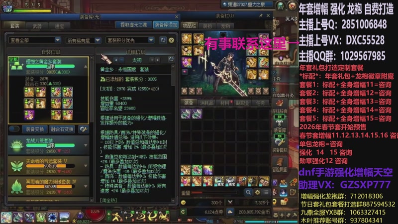 【2026-02-07 16点场】DNF木叶剑心:助理:2026年年套增幅强化木叶晚上播
