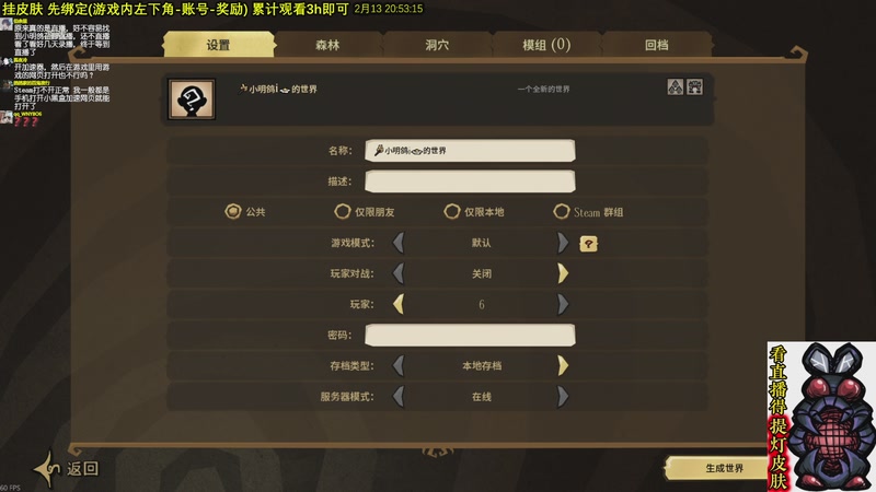 【2026-02-13 20点场】小明鸽i:看直播得皮肤 饥荒小明鸽i
