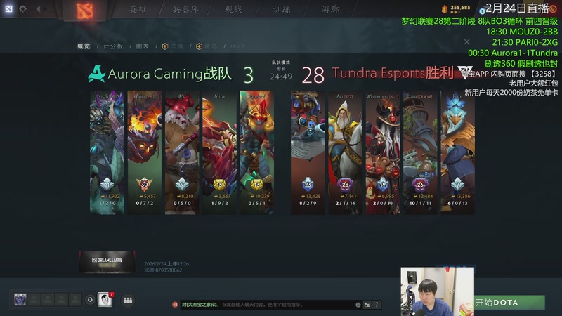 【2026-02-24 00点场】杰出哥:来看XG表演 梦幻联赛28