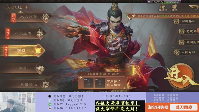 【2026-02-18 17点场】菜刀三国杀:大家过年好啊! 160504