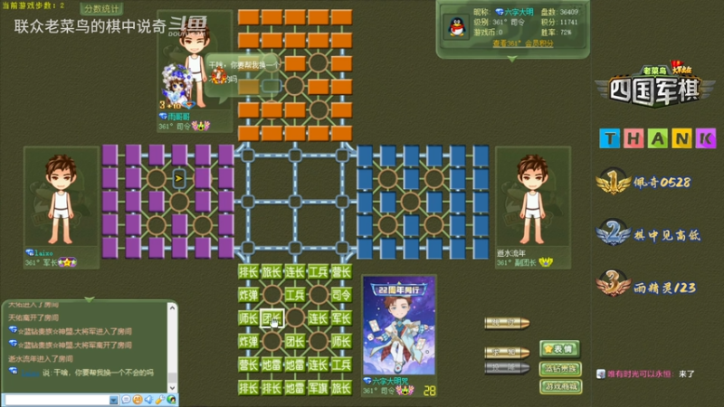 满配的棋,司令被军逮得到处跑。