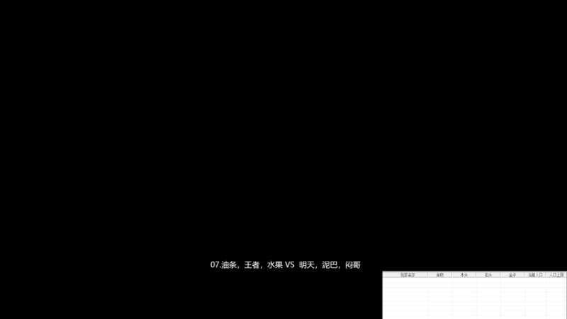 07.油条,王者,水果3VS2明天,泥巴,闷哥。杀人王:1明天2油条3泥吧4水果5油条