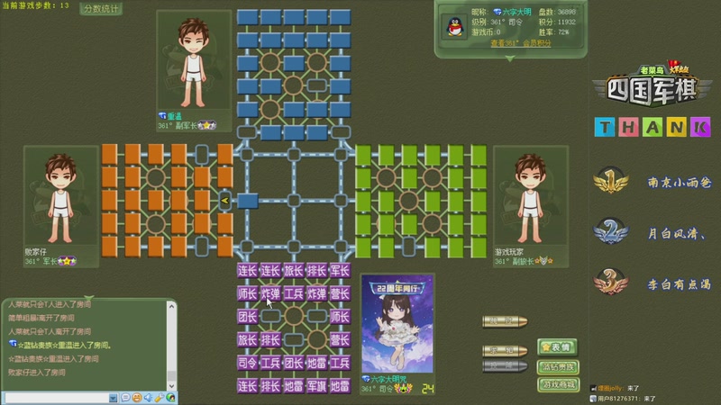 【2026-03-26 17点场】联众老菜鸟的棋中说奇:❤四暗天花板,军棋教科书。