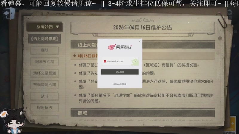 【2026-04-16 17点场】Ryan心颜:关注可每天排位求生低保帮帮~