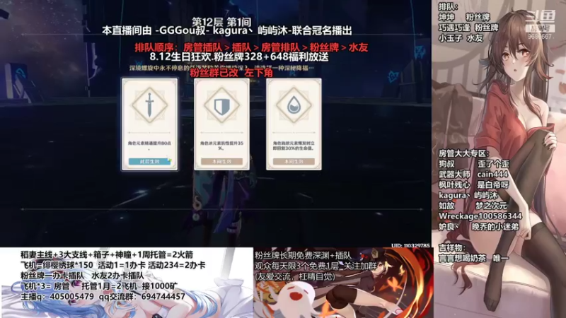 【2021-08-03 21点场】无忧呐丶:8.12送宵宫.免费深渊看号.帮肝各种.