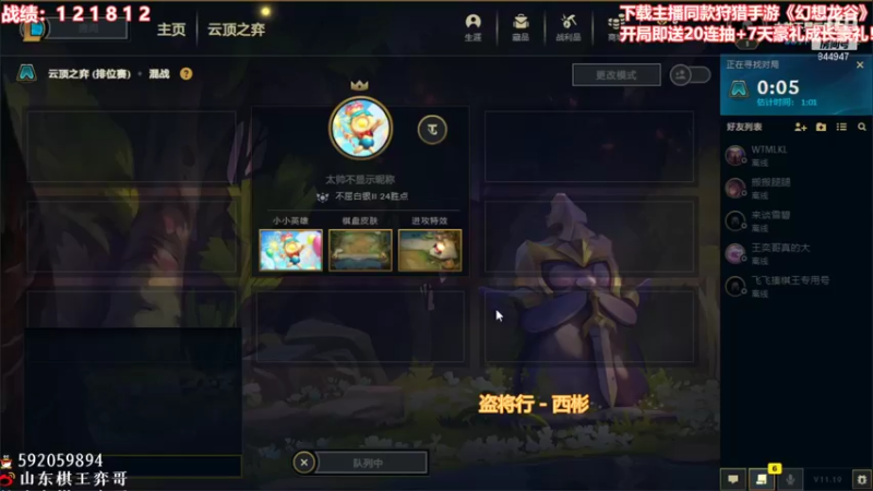 【2021-09-30 18点场】山东棋王弈哥:五复生六刺客三星稻草人!!