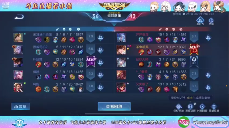【2021-11-12 10点场】BOA小强:全能国服 带飞全场