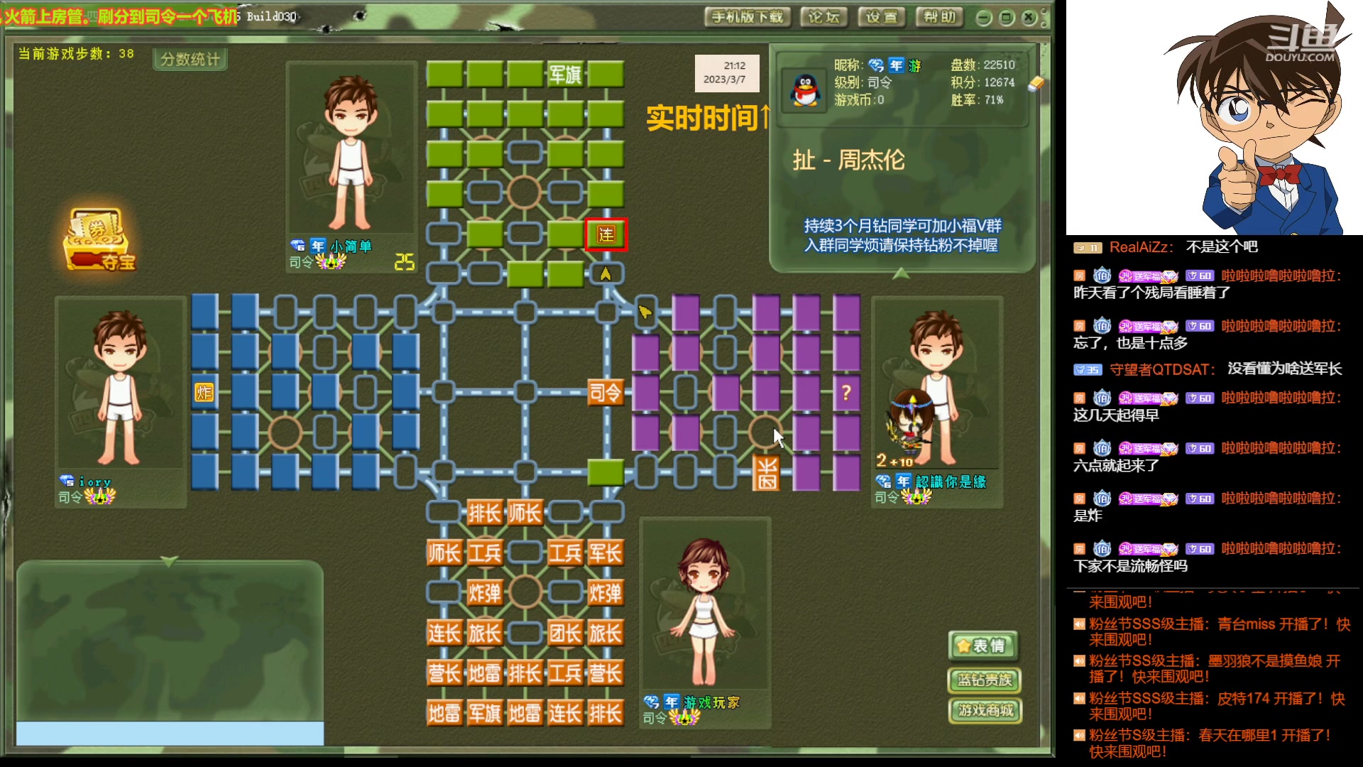 【2023-03-08 02点场】四国军棋欠你幸福:军棋玩的是谋略,攻的是心计,忌的是鲁莽