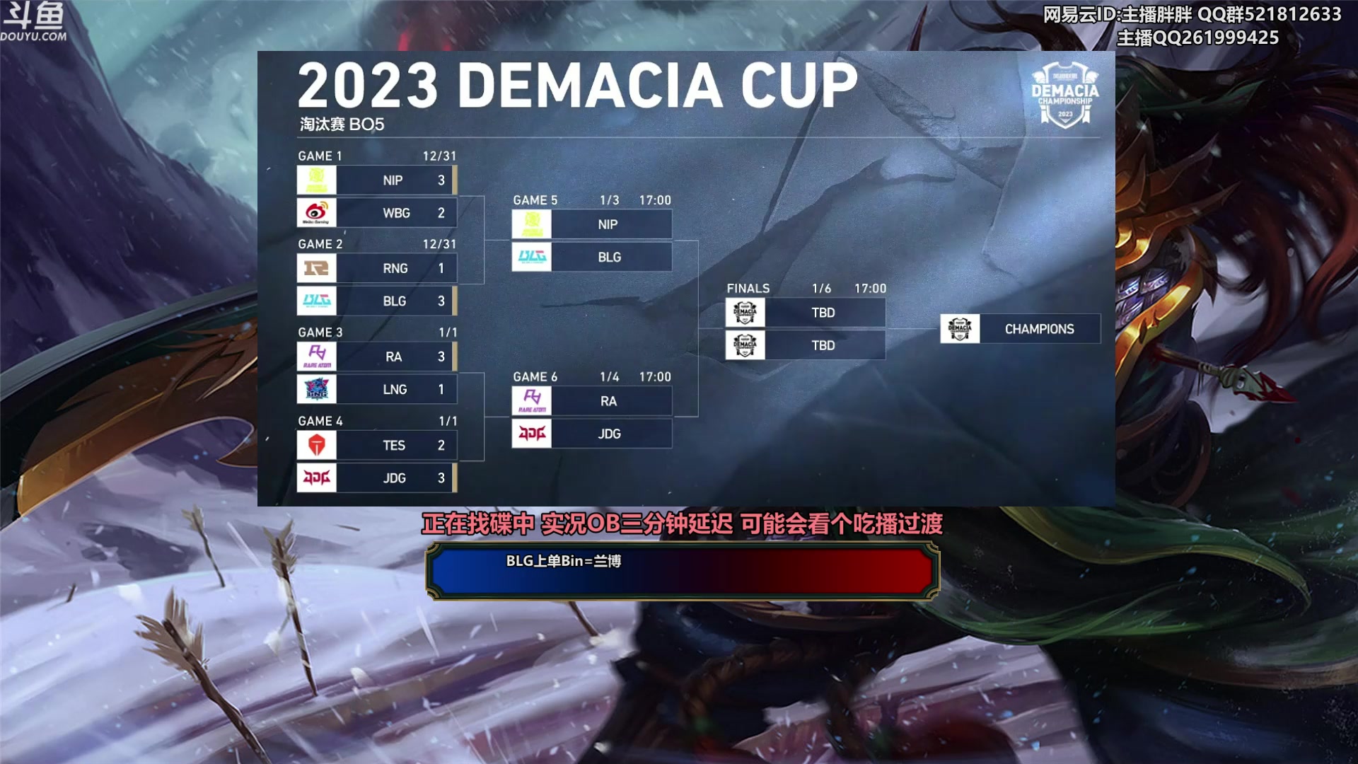 【2024-01-02 22点场】胖胖灬:胖胖OB:德杯四强 BLG JD撞车!