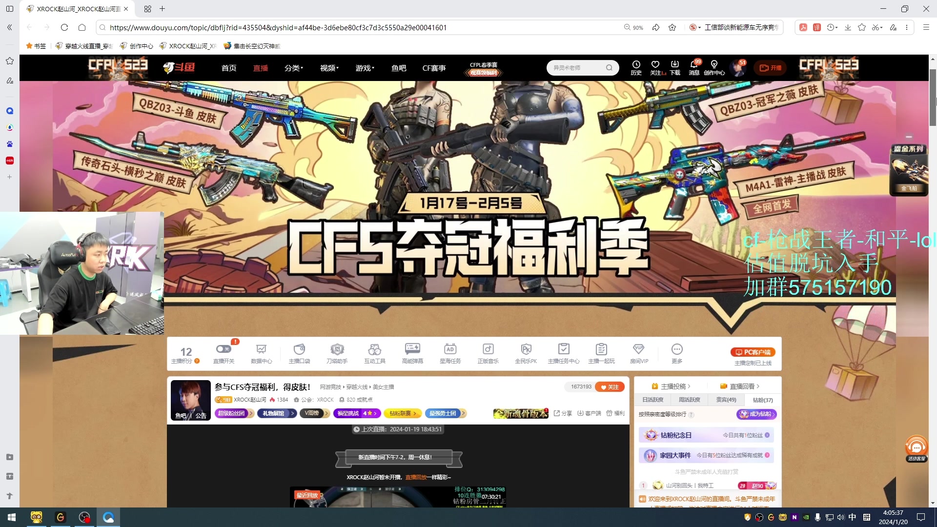 【2024-01-22 18点场】XROCK赵山河:参与CFS夺冠福利,得皮肤!