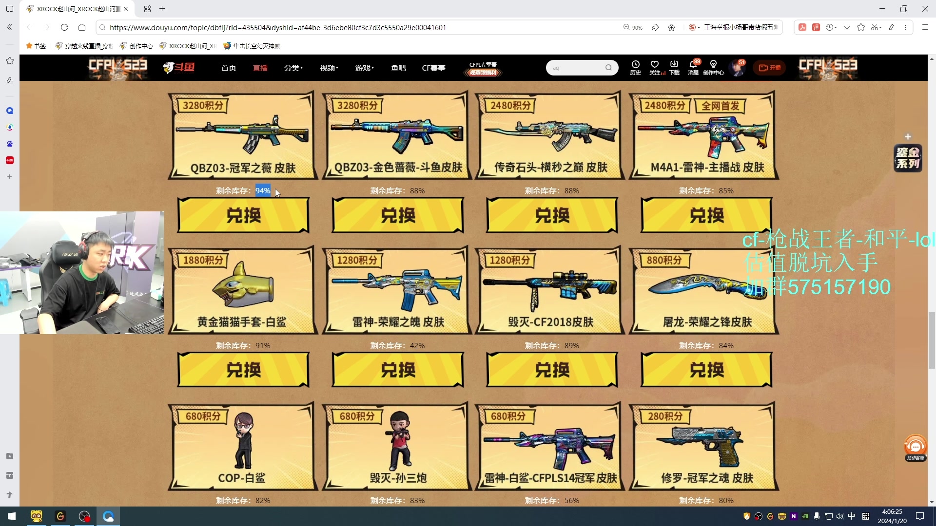 【2024-01-20 04点场】XROCK赵山河:参与CFS夺冠福利,得皮肤!