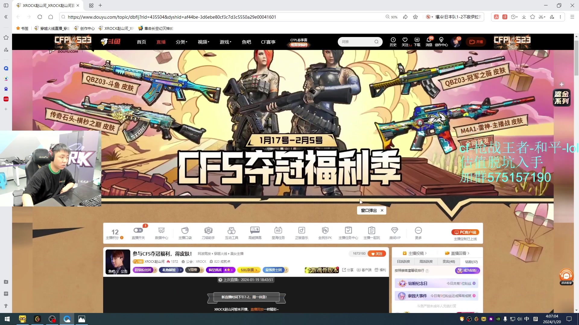 【2024-01-20 04点场】XROCK赵山河:参与CFS夺冠福利,得皮肤!
