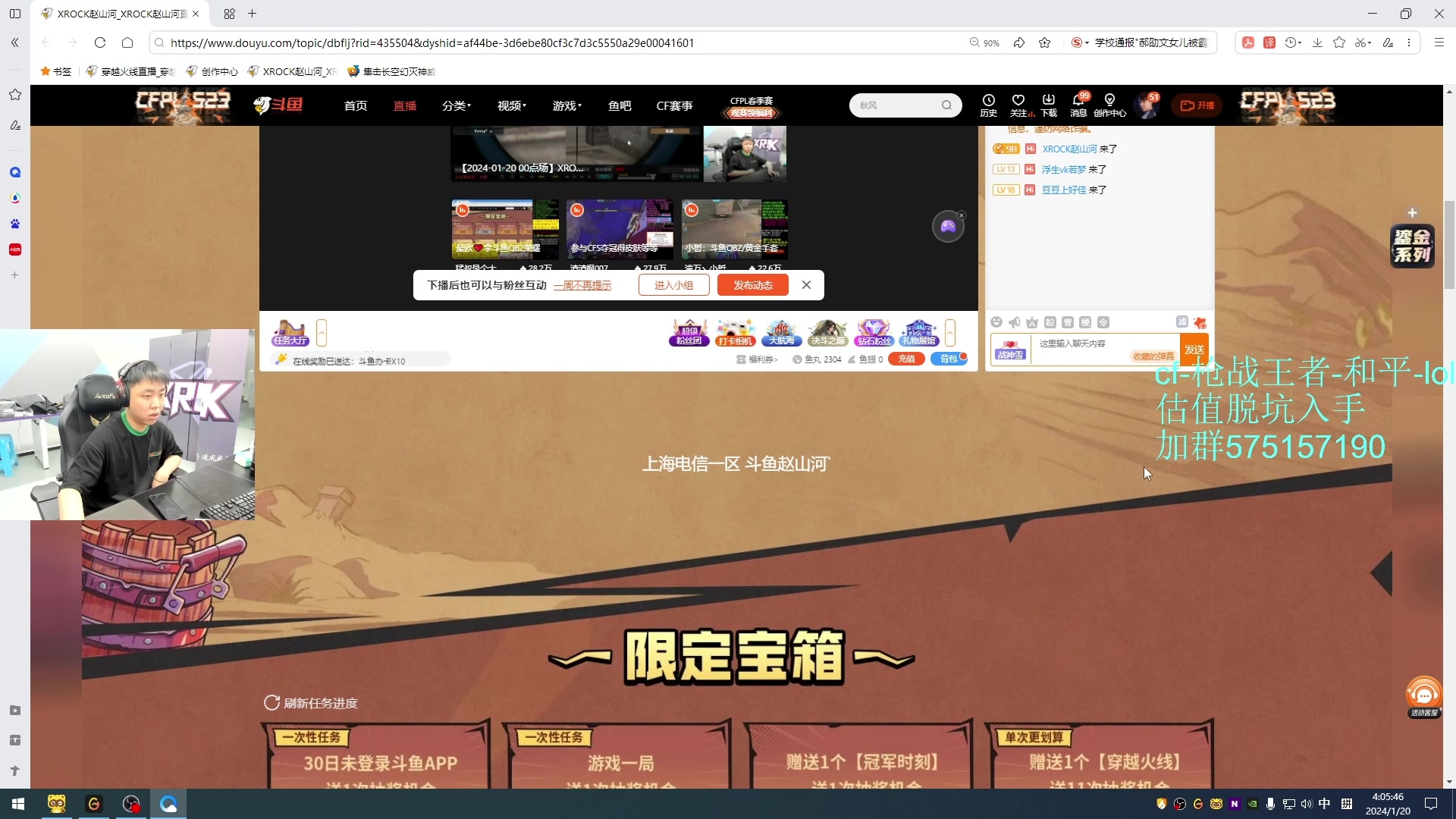 【2024-01-22 18点场】XROCK赵山河:参与CFS夺冠福利,得皮肤!