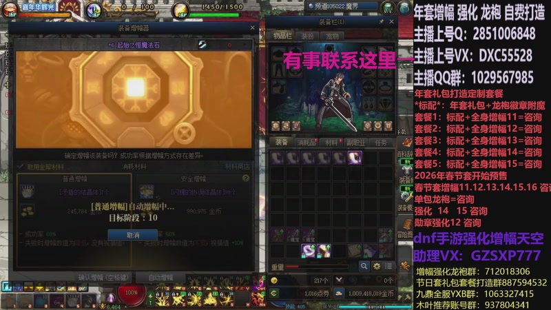 【2026-01-05 10点场】DNF木叶剑心:助理:2026年年套增幅强化木叶晚上播