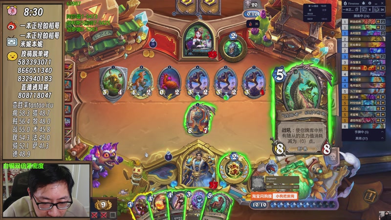 稻哥炉石12胜竞技场(牧):5时间涟漪5永时之翼