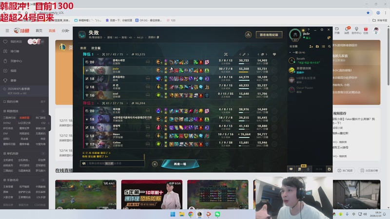 【2026-02-11 23点场】王纪超666:韩服80胜率3天千分完成,接下来4天第一