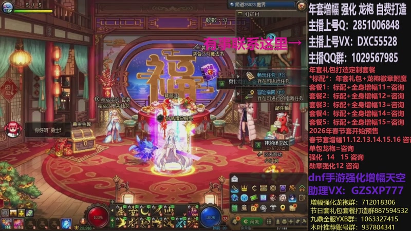 【2026-03-04 12点场】DNF木叶剑心:助理:2026年年套增幅强化木叶晚上播
