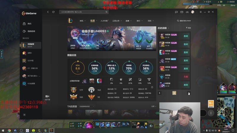 【2026-04-11 15点场】LOL丶摇摆:今天包天.明天继续韩服冲