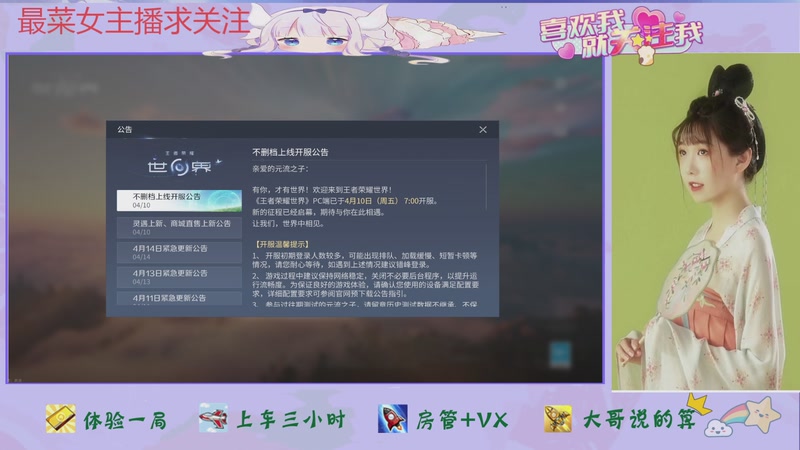 【2026-04-15 16点场】停留在雨中Cium:王者荣耀世界来了哦