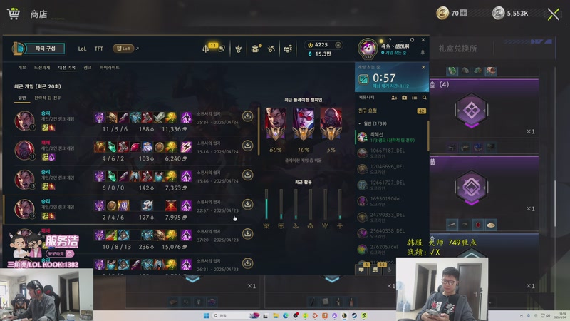 【2026-04-24 13点场】余小C真的很强:余小C:韩服大师749冲800!
